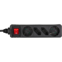 InLine? Steckdosenleiste, 3-fach Schutzkontakt, mit Schalter, schwarz, 5m