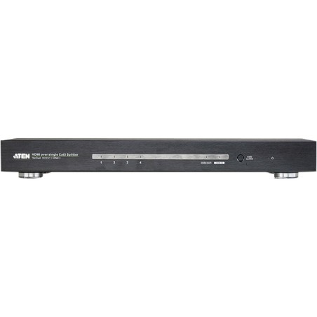 57833 - Der 4-Port-HDMI-Over-Single-Kat.-5e-Splitter VS1814T von ATEN gewährleistet eine schnelle und effiziente Möglichkeit, digitale HD-Bildsignale von einer Eingangsquelle zu max. vier Displays umzuschalten, die bis zu 100 m entfernt sein können. Dank der verwendeten HDBaseT-Übertragungstechnik können Sie den VS1814T über ein einziges Kat.-5e-Kabel mit den Empfangsgeräten verbinden, um hochauflösende HDMI-Signale in Echtzeit zu übermitteln. Er unterstützt die 4k2k-Auflösung und ermöglicht die Auswahl des gewünschten EDID-Modus, um die EDID-Daten der Bildschirme stets zuverlässig weiterzuleiten, damit Sie das Bild mit der optimalen Auflösung anzeigen können. Die VS1814T-Lösung ist ideal für Installationen, bei denen HDMI-Inhalte gleichzeitig an verschiedenen Standorten gezeigt werden sollen, wie z.B. Verkaufsförderung im Einzelhandel oder auf der Messe, Übertragung von Informationen an öffentlichen Orten (z. B. Nachrichten, Haltestellen, Abflugzeiten, Fahrpläne von Bahnlinien usw.), Sportereignisse, Sitzungs- und Vorlesungssäle, Schulungs- und Mitarbeiter-Seminarräume, etc. ein HDMI-Eingang wird über Kat.-5e-Netzwerkkabel auf vier HDMI-Ausgänge verteiltlokaler HDMI-Ausgangverlängert den Übertragungsweg auf bis zu 100 mimplementiert die HDBaseT-Technologie und kommt dadurch mit nur einem Kat. 5-Kabel aus, um die Sende- und die Empfangseinheit miteinander zu verbindenfehlerfrei: dank HDBaseT-Technologie ist die HD-Bildübertragung unanfällig gegenüber StörsignalenHDMI- (3D, Deep-Color, 4kx2k) und HDCP-kompatibelunterstützt Dolby True HD und DTS HD Master Audiounterstützt CEC (Consumer Electronics Control)eingebauter, bidirektionaler RS-232-Port zur verbesserten Fernsteuerungunterstützt Auflösungen bis Ultra HD 4kx2k und 1080p Full HDunterstützt bis zu 340MHz Bandbreite für optimale BildqualitätSignalübertragungsrate bis 3,4 GBitAuswahl des EDID-ModusRack-Montage möglich