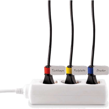 Avec LTC MINI, les devinettes sur la barrette d'alimentation cessent finalement. La petite cravate de velcro de couleur inclut le câble comme un clip. Et les étiquettes à dos en plastique facilitent l'étiquetage des câbles, des fils et des prises dans ou derrière les armoires. Mais l'attribution de câbles USB, de câbles au système de divertissement à domicile ou au système téléphonique devient également un jeu d'enfant. Bien sûr, LTC MINI est réutilisable, rapidement installé et retiré. La petite fermeture velcro est disponible en noir, blanc ou coloré (jaune, bleu, rouge). De plus, LTC MINI permet d'attacher et d'étiqueter des câbles même très fins, ce qui est particulièrement utile pour stocker de manière ordonnée les écouteurs, l'électronique, les accessoires et les câbles de charge. LTC MINI convient à l'étiquetage Codage couleur des câbles de toutes sortes ainsi que le groupage des câbles fins. Couleur: noir