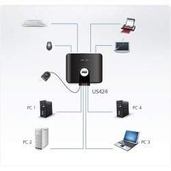 60644C - ATEN US424 USB 2.0 Data Switch, 4 USB-Geräte an 4 PC, elektronisch