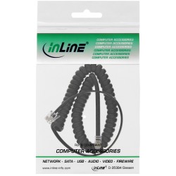 18893I - Câble spiralé pour combiné InLine®, fiche / fiche RJ10, noir, max. 2 m
