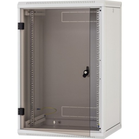 RUA wall-mounted cabinet is one of the one-sectioned wall-mounted cabinets. Thanks to removable side panels, installed devices are very easily accessible. Das Gehäuse verfügt über eine robuste Schweißkonstruktion. Die hohe Verarbeitungsqualität und neueste Technologien gewährleisten sein tolles Aussehen. Cabinet has a robust welded construction. High quality processing and the up-to-date technology ensure a perfect look of the cabinet and maximal loading capacity of 30 kg. Cabinet door is glass standardly but it can be steel or perforated as required. The hinge system enables almost 180° wide opening of the door. Doors can be easily removed. REMOVABLE SIDE PANELS: Removable side plates enable access to the installed devices from the rear side without demounting. Blanking panels for installation of cooling ventilators: RUA has now in its all versions six break-out blanking panels for installation of cooling ventilators RAX-CH-X07-X9 (three are in the upper and three in the lower part of a cabinet). RUA cabinet enables installation of devices that could not be cooled sufficiently in wall-mounted cabinets in the past and therefore had to be installed into free-standing cabinets only. ADJUSTABLE VERTICAL RAILS: One pair of vertical 19" rails is freely adjustable in any depth of the cabinet. This simplifies mounting of the device and organisation of connecting cables. BREAKOUT-TYPE BLANKING PANELS: Cable openings covered with breakout-type blanking panels are ready in the top, bottom and rear part of the cabinet. Use a plastic frame and a blanking panel with a brush, that are parts of the cabinet supply, to seal the cabinet opening against dust penetration.DESCRIPTION, PURPOSE OF USE19" one-sectioned wall-mounted cabinet with IP30 protectionRemovable side panels secured by locksCabinet is to be hanged right on the wallCabinet includes two sliding vertical railsCabinet construction: Welded frame with removable side panels secured by locks Safety hardened glass door, thickness 4 mm. On demand may be metal or perforated Max. permissible load of the door is 10 kg Min. thickness of the surface fi nish is 65 micrometerCabinets are intended for installation of data and telecommunication devices and their distribution systems The frame of the cabinet and all the removable parts are connected with earthing cables that have to be properly fixed and inserted into connectors during all the time when using the cabinetThere is one M8 screw placed on the bottom part of the cabinet as an earthing main pointCable openings covered with breakout-type blanking panels are placed in the top and the bottom part of the cabinet rear side, others are in the top and the bottom side of cabinet There are several openings in the top and bottom part of the cabinet which allow to install ventilation units and which are covered with break-out blanking panelsOPERATION CONDITIONSOperation environment:OfficeThe cabinet is not intended for outdoor installations and for installations in environment that can influence negatively the functionality of the cabinet and the mounted devices (e.g. environment with danger of explosion or humid and wet surroundings)Must be protected against:Mechanical damageImproper manipulationA different usage than the cabinet is intended for Improper manipulation is especially:Overloading (maximum recommended load exceeding)Device installation that can influence negatively operation and function of the cabinet or the installed equipmentChange of the construction or design of the cabinetINSTALLATION OF THE CABINETThis type of cabinet is to be hanged right on the wall using screws, wall plugs and washers (included in the supply). Spacing of mounting holes is showed and indicated as "R" in the cabinet scheme To secure the maximum recommended load, it is necessary to fix the cabinet on the wall with an appropriate carrying capacity (brick, concrete or similar) and to distribute the installed loading equally To avoid dust penetration in a case where cables lead through some of the cable openings, you can seal it using a blanking panel with a brush or secure by plastic frame (both are part of the cabinet supply)ENVIRONMENT PROTECTIONAll parts are made of recyclable materials and after its discard, it is necessary to dispose the cabinet according to valid regulationsSupply includes: 2x key - front door, 4x screw 6x50, 4x washer 6,6, 4x dowel 10, 8x captive nut M6, 1x blanking panel with brush, 8x screw M6x10, 8x plastic washer, 1x plastic frame 300x700mmMaterial: Safety hardened glass 5 mm thick, steel sheetDimension (HxWxD in mm): 635 x 600 x 395 Door size (HxW in mm): 530 x 530 Net weight: 21,3 kg / Gross weight: 21,7 kg