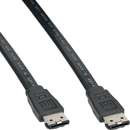 Avec S-ATA II vitesses allant jusqu'à 3 Gb / s (300 Mo / s) sont possibles. Le câble est minutieusement protégé et reste souple. eSATA est l'option de connexion externe, les bouchons sont différents de connecteurs S-ATA normales.