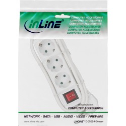 16433T - Multiprise InLine®, contact de protection à 3 voies, avec interrupteur, blanc, 3m